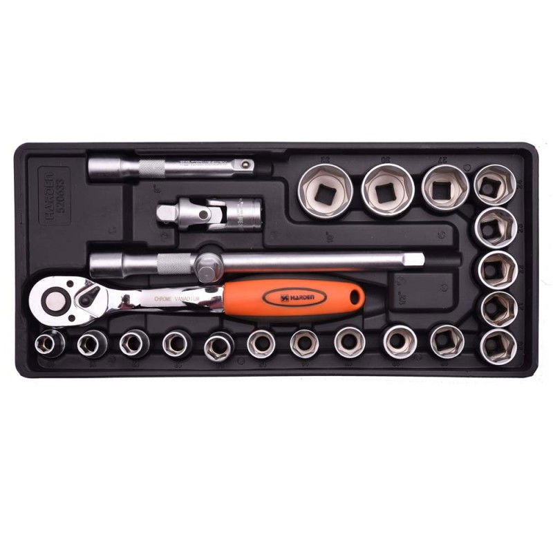 Dugókulcs készlet 1/2", 23 részes, tálcás