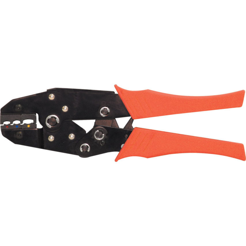 - Saruzó fogó reteszelt préskerettel és színkódolt pofákkal, állítható és előre beállított présnyomással szigetelt kábelsaruk pontos préseléséhez.
